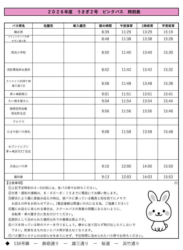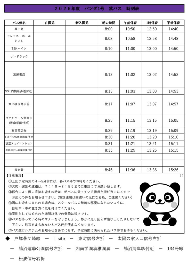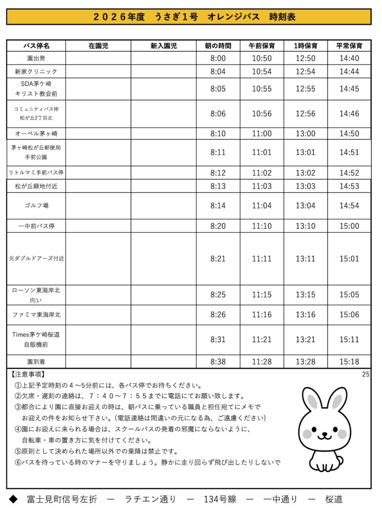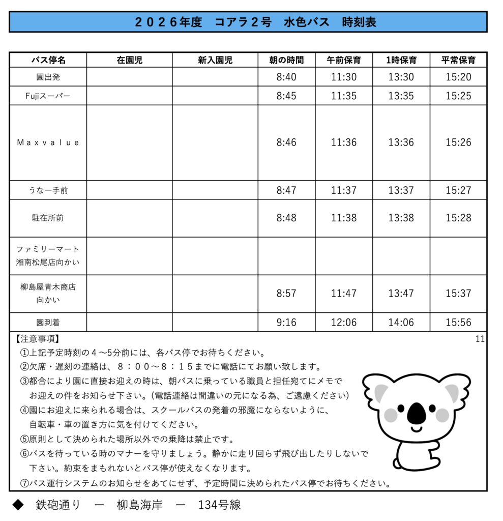 2026年度入園の方、お待たせいたしました。2026年度のバスルートが確定致しましたので、お知らせいたします。